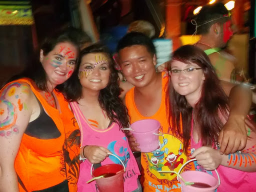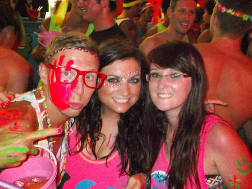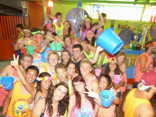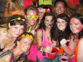 As I walked down the main street towards the beach, following the glow paint covered, luminous t-shirt wearing crowd, nothing could prepare me for the sheer craziness that greeted me. As I stepped onto the beach, a girl was being strechered off and I thought to myself ‘what am I letting myself in for?!’ The beach was one heaving mass of multicoloured people, illuminated by flashing lights and lasers, all dancing to a haze of songs being blasted from the various bars.