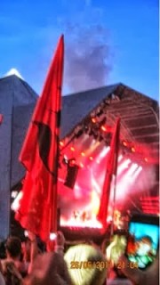 Imagine a city full of tents, stalls, stages, flags, grass, sculptures and masses of unwashed, yet ridiculously happy people. Think of the fires and fairy lights at night, the stench of the toilets and the beats from the Dance Village. Picture any and all types of food and bars selling overpriced cider. See people of all ages – old hippies with huge beards, children in fancy dress, drunken youths and middle aged ravers. Hear the songs of legends: U2, Coldplay, Beyonce, Pulp, Bruce Springsteen, Radiohead, Fatboyslim, Chemical Brothers, Jay Z. Or discover the unknown talents of an unknown singer in a small, crowded tent. Realise that it’s not just about music, but about dancing, art, madness, charity, friendship, adventure and experience. Imagine endless mud and pouring rain, then baking sun and no shade. Understand that anything goes, clothing is optional yet wellies and face paint are a must have. Witness the madness of Shangri La and Arcadia – naked mermaids, planes, cars with wings and fire balls in the air. Marvel at the sunrise from the legendary stone circle as another day dawns over the most famous festival in the world.