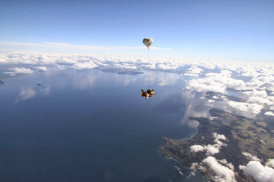 The plane was possibly the smallest, ricketiest thing I have ever encountered and I have no idea how it actually managed to stay in the air. As we took off my nerves really kicked in and any thoughts of hangover were soon forgotten. As we slowly ascended higher and higher it hit me that there was only one way down; to jump, and I would be the first to go. We soon hit 12,000ft and the door of the plane was opened. My stomach did a back flip as I sat with my legs dangling out of the plane, staring at the earth far, far below. Before I knew it, the plane and sky were above me; we had left the plane and were falling backwards. The instructor soon flipped us back round and I was slapped in the face by a freezing wind that made my eyes water. It was at this point that I realised I was hurtling towards the ground and should take in the amazing views around me and really appreciate the experience. I could see the clear blue water of Lake Taupo and the striking mountains in the distance (the location of Mount Doom for you LOTR fans). I don’t think there is a better place in the world to do a skydive, the view were absolutely stunning.