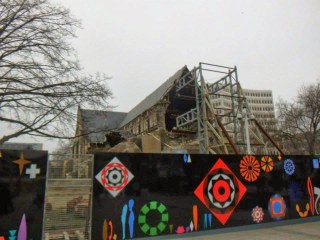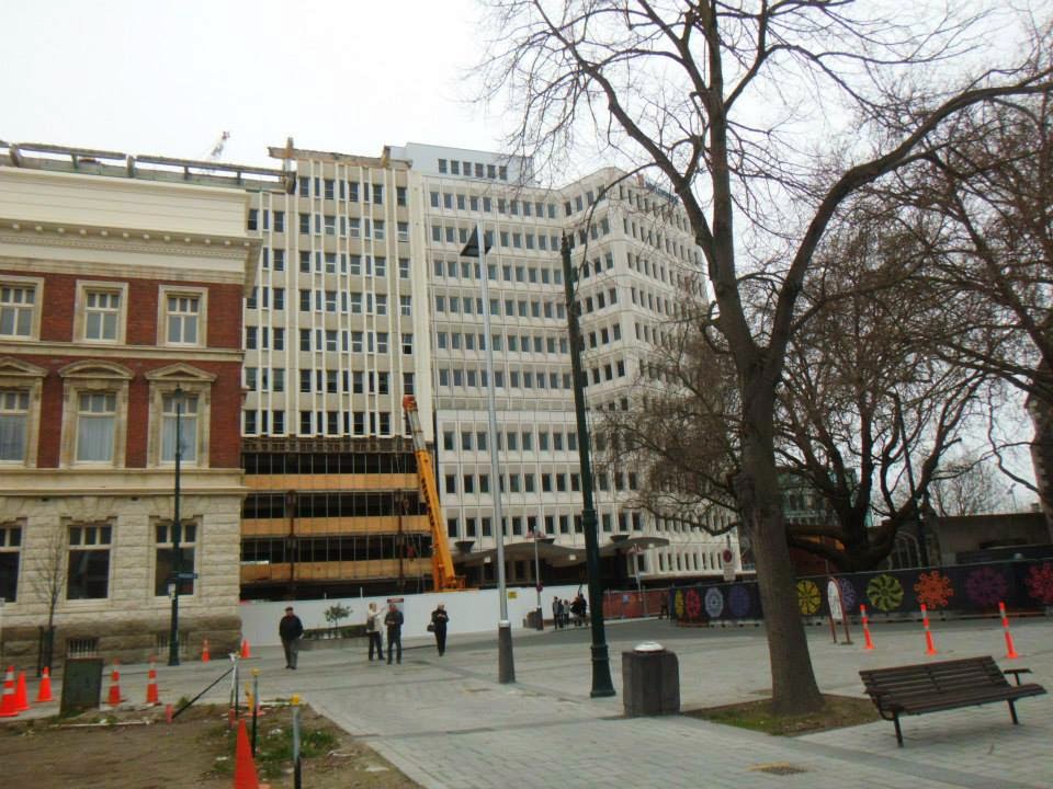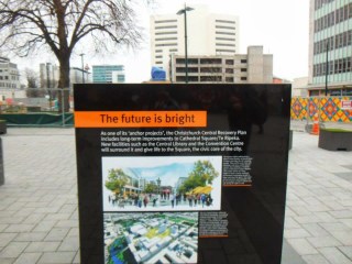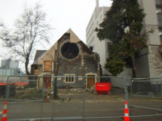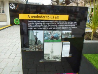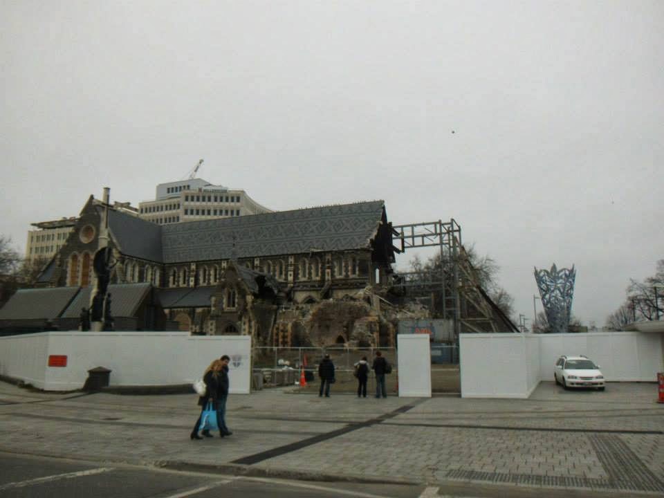 The only comparison I could possibly associate the city centre to would be a war zone. Now, I have never actually been to a war zone (obvs) so this comparison is merely based on my expectations, but it really is the only judgement I can make that justifies what I saw. Firstly, the whole place was pretty much deserted, which added a forlorn atmosphere to the already depressing scenery. It was bizzare walking through an abandoned city centre, completely surrounded by empty buildings that were either half crumbling or boarded up. Many buildings looked like construction sites as they were either fenced off or half demolished. The roads were empty and many had huge cracks running through the concrete. The cathedral, which must have been pretty impressive pre earthquake, was half caved in and surrounded by fencing; it was a thoroughly depressing site to behold. As I walked around the city, I felt as if I was exploring a film set, as the whole place felt surreal. I just couldn’t comprehend how an earthquake could cause so much damage and how little progress had been made since the disaster. It was a completely bizarre experience and I real empathized with the residents of Christchurch. It much be truly devastating to see a city you know and love to be destroyed an become a tiny shadow of what it once was.