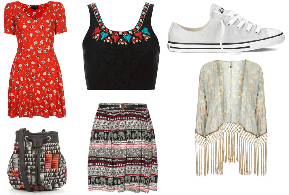Dress, Bralet and Kimono – Topshop. Bag and Skirt – New Look. Shoes – Converse.