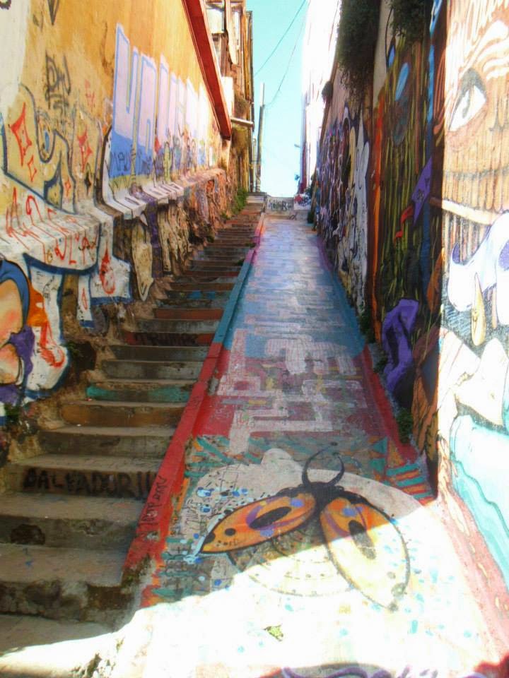 We obviously did a free walking tour, as they are fabby and I clearly can’t visit a city without doing one. I think this had to be my favourite walking tour that I did in South America because I just loved the layout of the whole city. We explored hidden passageways, went up and down funiculars, marvelled at graffiti and even went down a huge metal slide rather than take the stairs. Valparaiso is such a colourful city as there are no graffiti laws, so the houses are painted all sorts of colours and amazing artwork lines the walls of many buildings. As part of the walking tour we stopped off at a little cafe where we treated ourselves to handmade empanadas and had a free shot of pisco, which were both cracking.